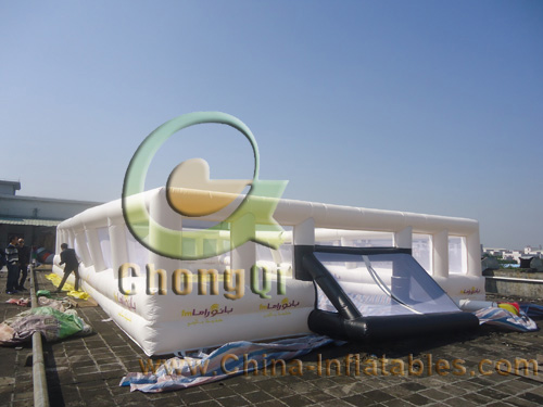 The football game hold in the inflatable football games pitch is the football game everyone can join in, young and old alike. Just like Table Football, and you know how addictive that can be! Try this version as a player yourself; simply put on a velcro belt and you’re ready to play. Player can only move left or right along the line they are attached to, as well as a short distance forward or backward. Even if people don’t enjoy watching or playing football, they will enjoy this game! No need to be super fit as you don’t have to run anywhere! The inflatable football pitch is ideal for Field Days, Fetes, Schools, Local Festivals, Youth Games Development, Corporate and Charity Events. The pitch dimensions can be customized according to your requirements for different uses and different room areas.