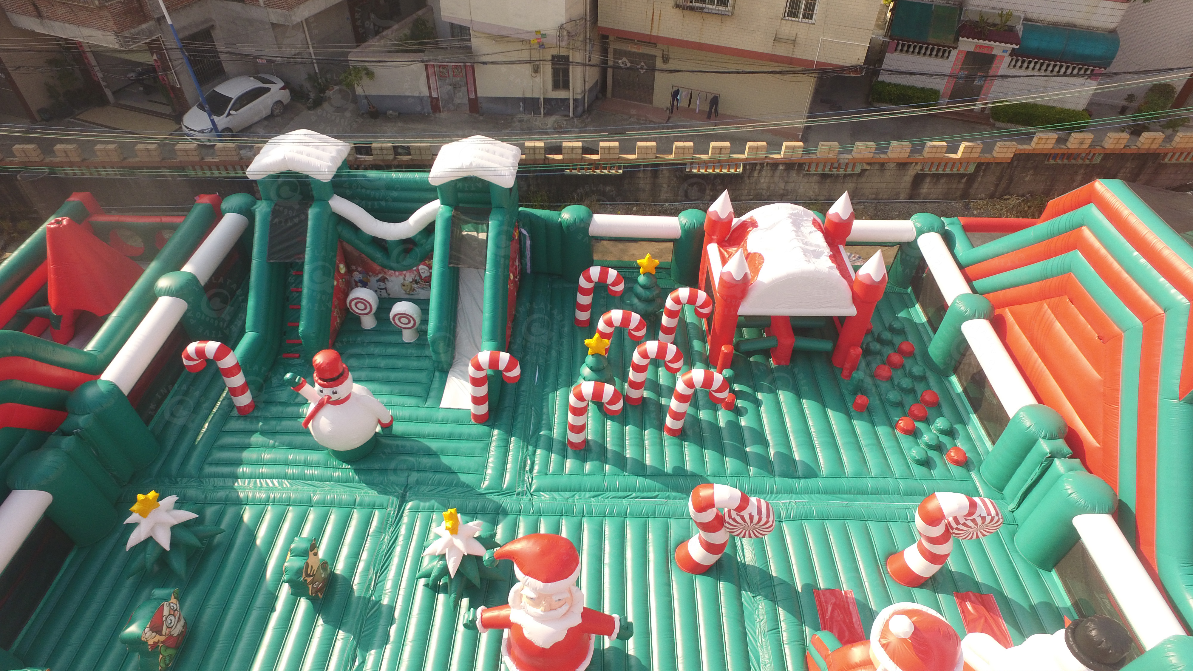 Inflatable Theme Park is a Combination of All Kinds of Super Fun Inflatable Games. It's a giant inflatable playground in which you can climb, slide, swing, jump, and so on.