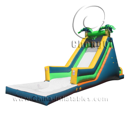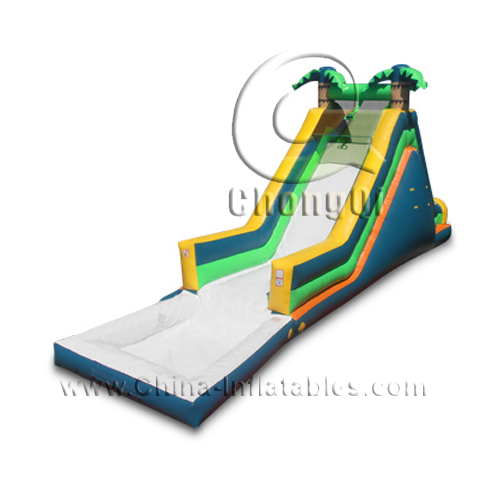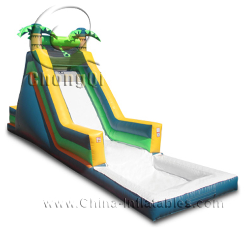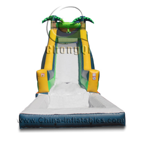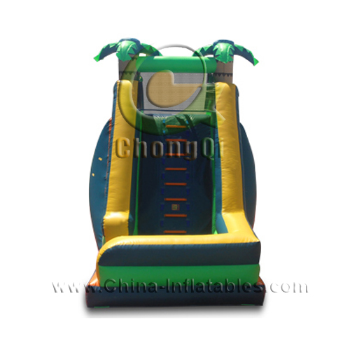 floating inflatable water slide palm tree jungle